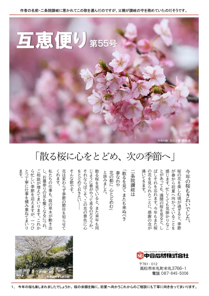さて本日、「互恵便り 第55号」を発行いたしました。