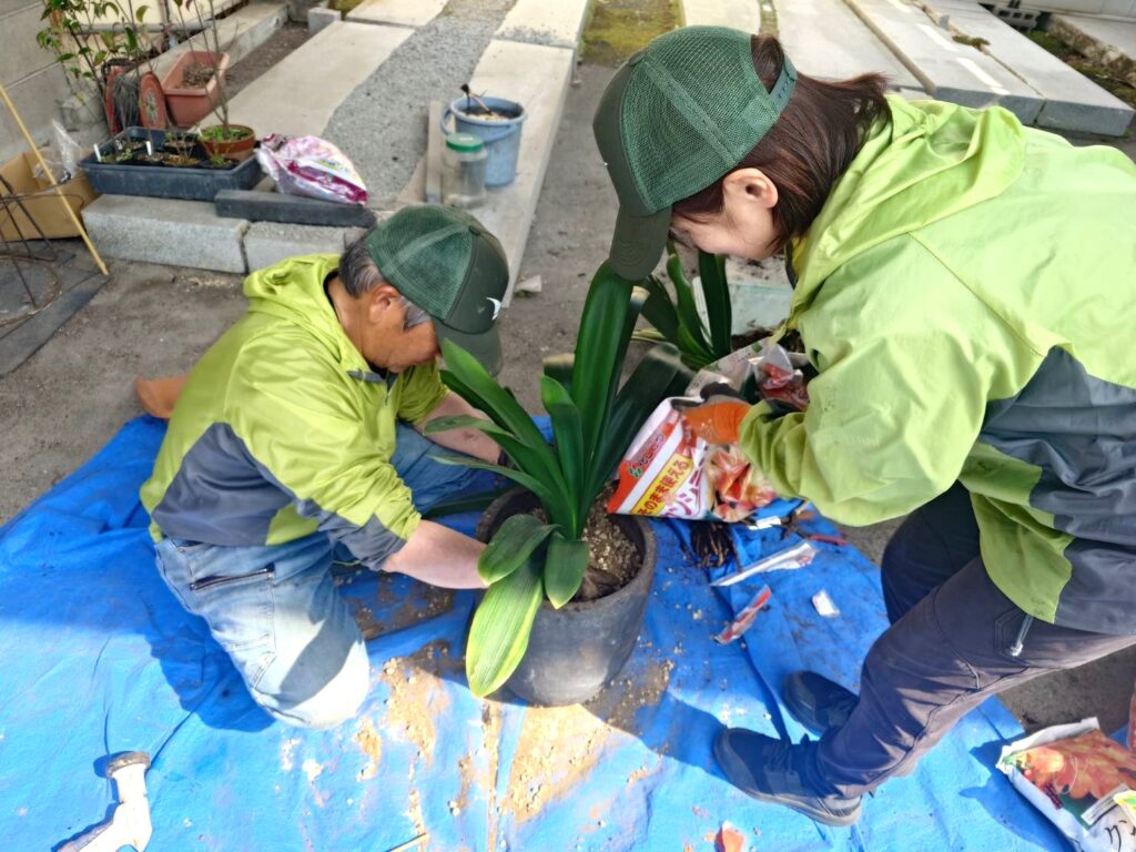 鉢植えのお花の植え替えをお手伝いさせていただきました。