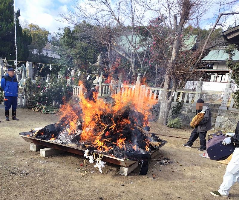 1月12日は、久米山久米石清水八幡宮のどんど焼きでした。