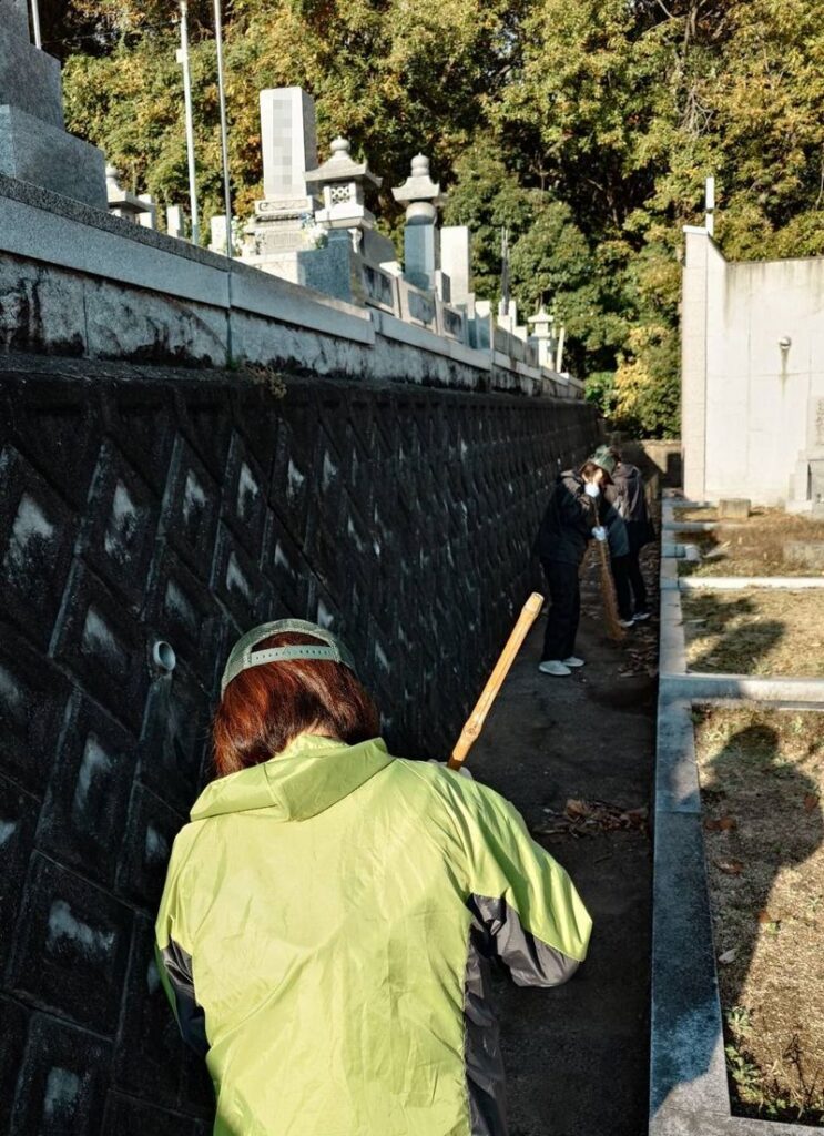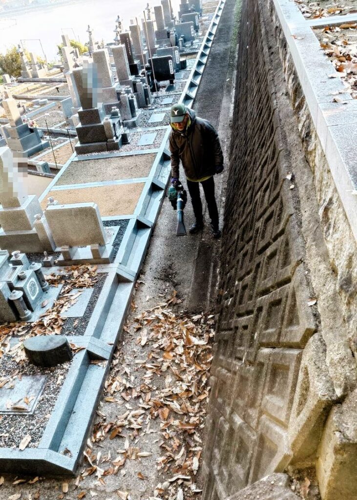 実は、自然が豊かな久米山墓地公園は枯れ葉も多くて大変です!