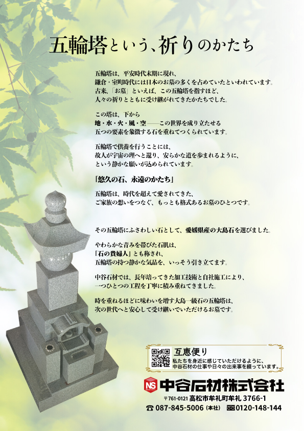 五輪塔は、平安末期より受け継がれてきた祈りのかたち。