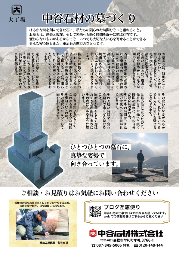 花崗岩のダイヤモンドと称される庵治石を用いて