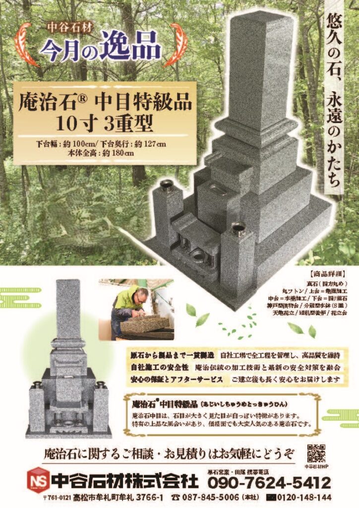 今月の逸品」として、当社オリジナル制作の“墓石紹介リーフレット”を初めて同封させていただきました。
