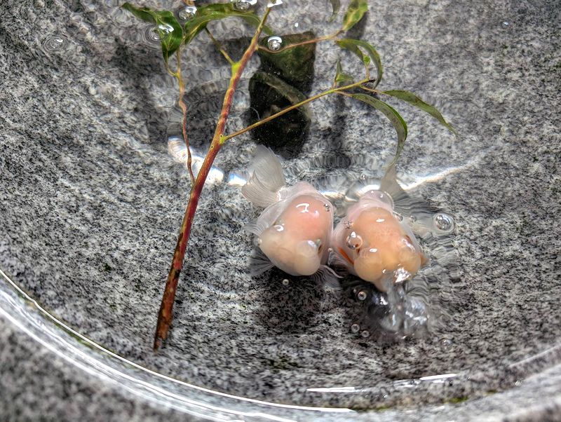 本社には、庵治石で作った水鉢で育てられている?ポニョたちがいます。