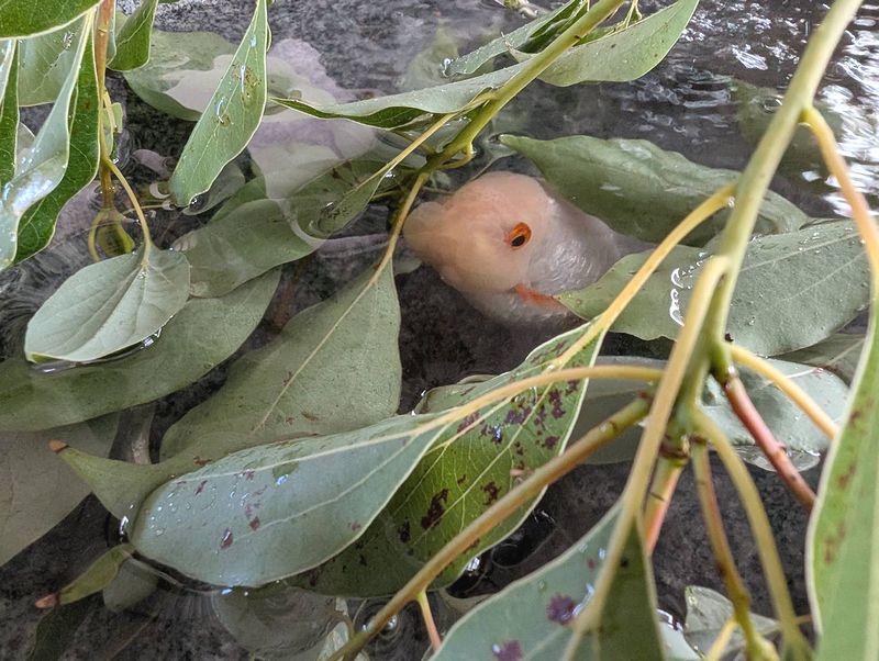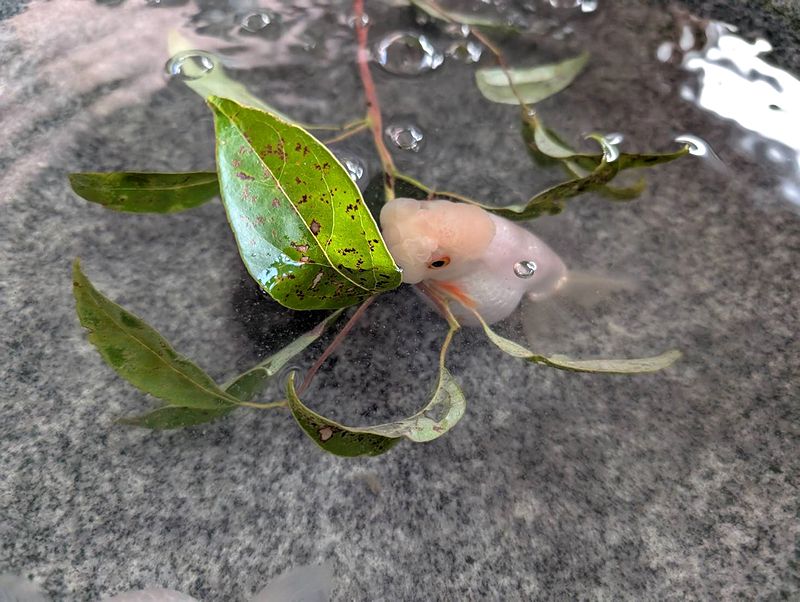 どうやらこのポニョ達は枝や葉っぱの下に潜ってじっとしながら、挟まれているのが好きみたいです。