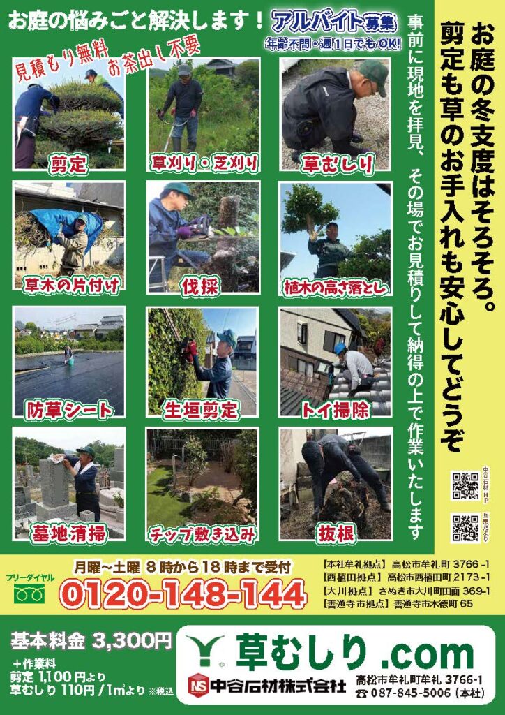 こんにちは。草むしり.com高松です。
