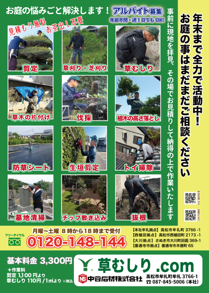 この時期は、お庭の片づけや伐採はもちろんですが、