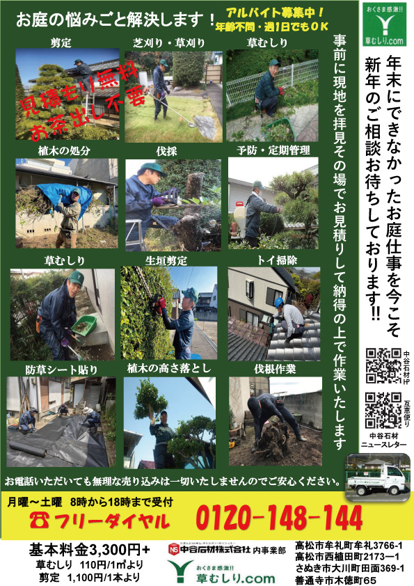 年末までにできなかったお庭仕事は、今の時季ですとお待たせせずにお応えできます。